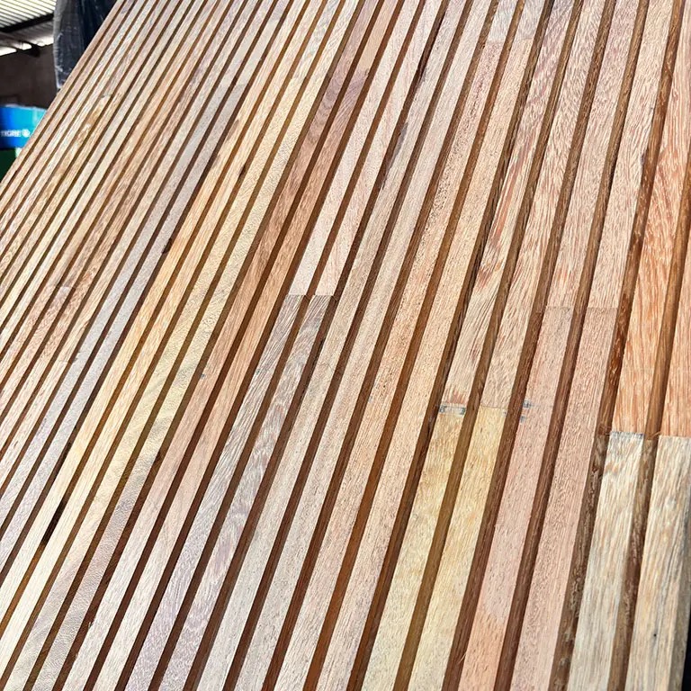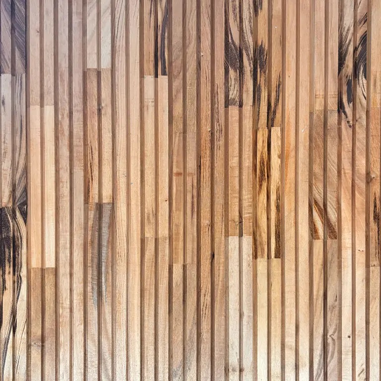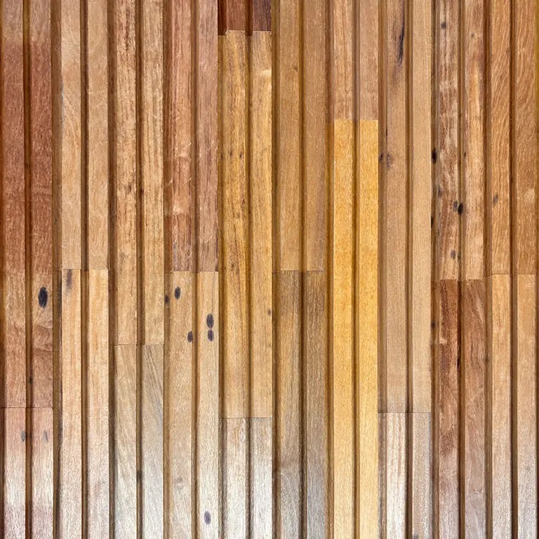 Painéis ripados e forros de madeira para teto e paredes, proporcionando conforto acústico e uma estética acolhedora e moderna.